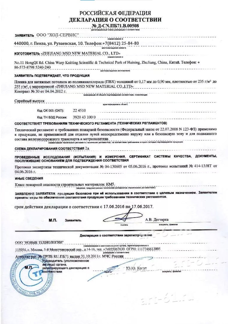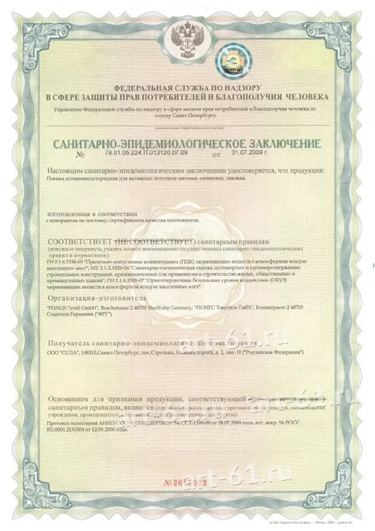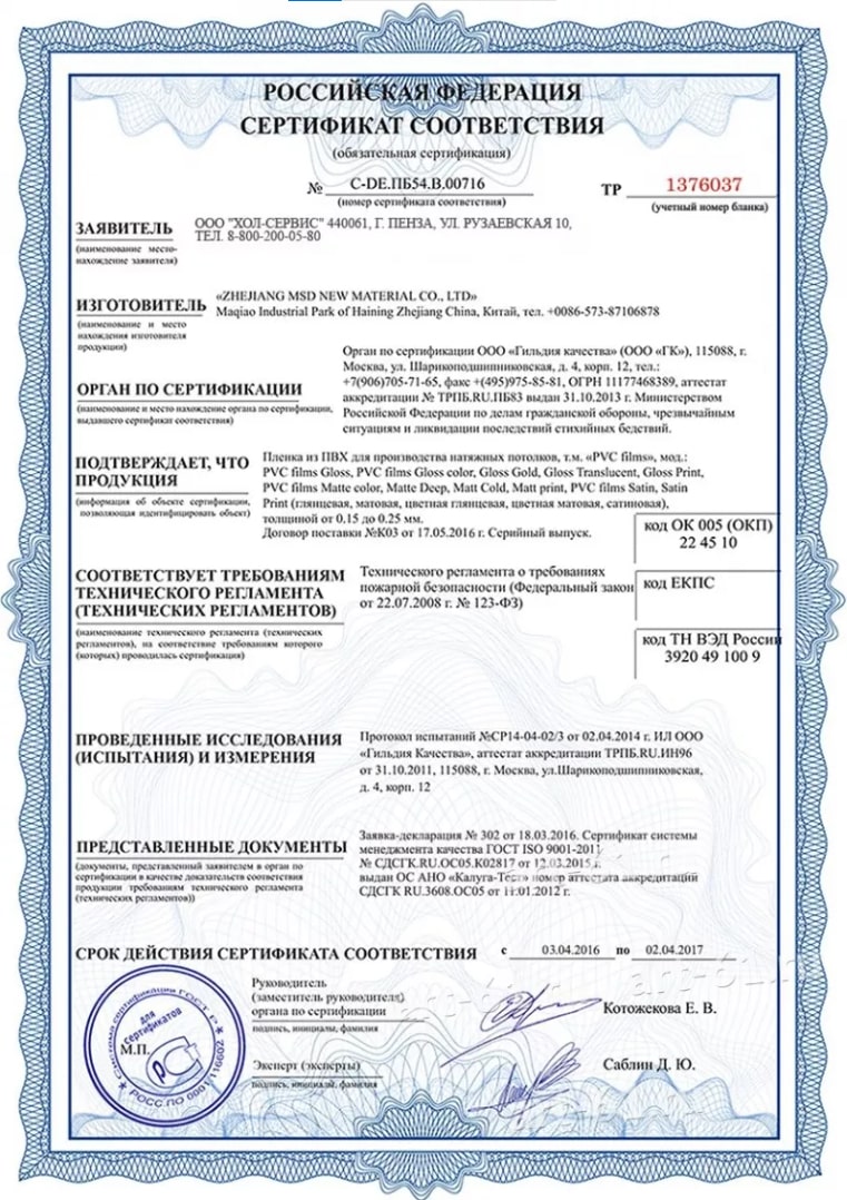 Современные полотна от проверенных производителей (например, MSD, Pongs, Clipso) имеют все необходимые сертификаты (в т.ч. гигиенические) и абсолютно безопасны. Легкий запах, который может появиться после монтажа (из-за нагрева материала), полностью выветривается через 1-3 дня проветривания.